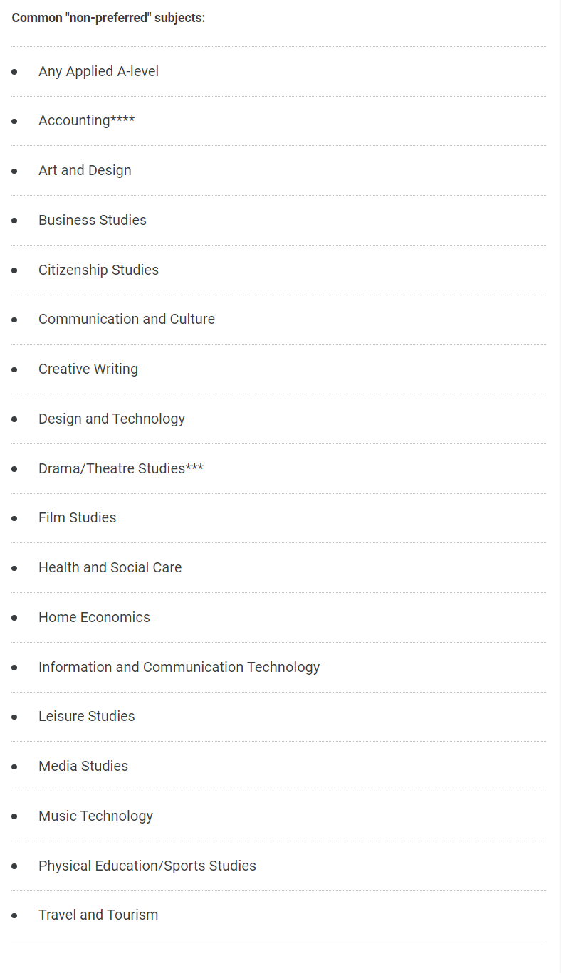 最后,还有一小部分A-Level科目是LSE通常不接受的。