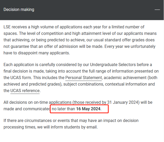 LSE官方表示最晚会在2024年5月16日发布所有的申请结果。