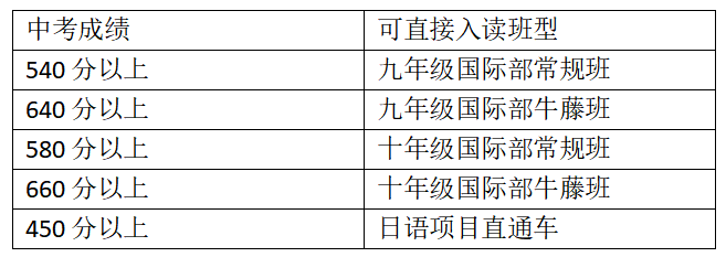 2.580分以上考生可缴费并签署十年级国际部常规班入学协议(660分以上十年级牛藤班)。