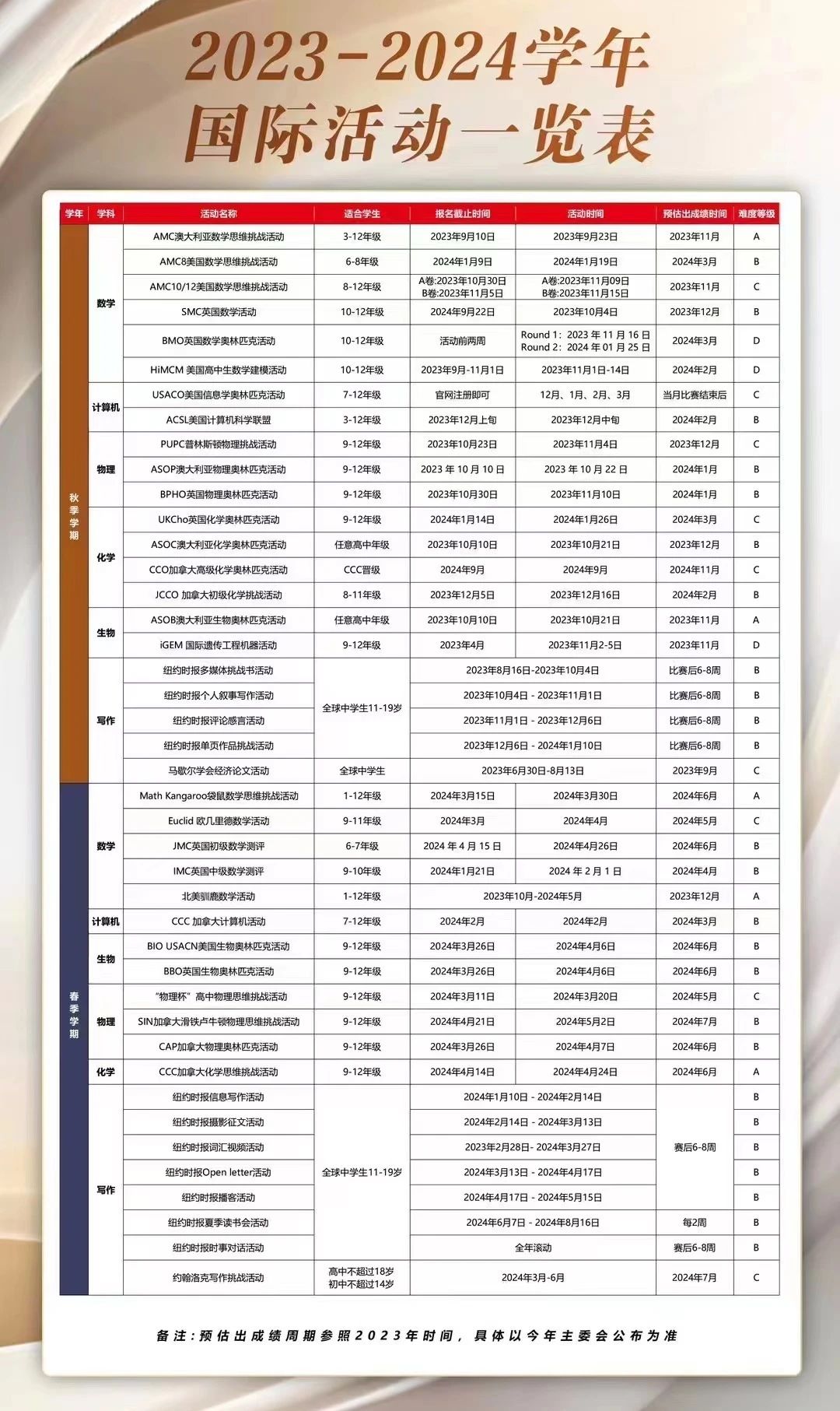 “收割”录取,丰富的竞赛经历不可或缺。只有先人一步,你才能在申请中超越他人,“收割”梦校OFFER。记得一定要赶紧选定目标,早做规划和准备!