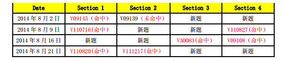 2014年8月16日雅思听力考试的版本号是两旧两新。