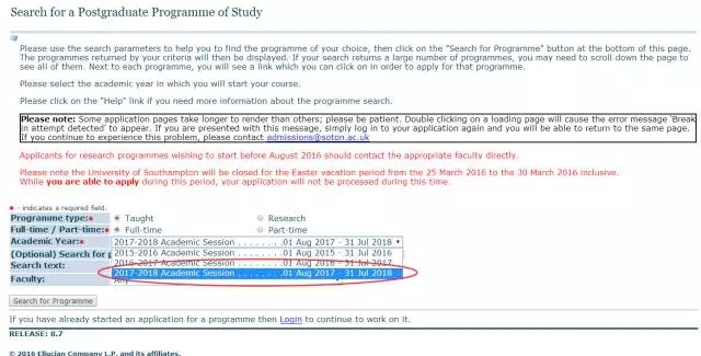 南安普顿已经开通2017/2018的申请