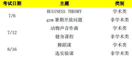 回顾这7场考试,每场考试对话部分的组合方式一般较为稳定:一篇学术类和一篇非学术类。具体对话主题、类别分布如下: