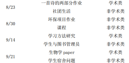 根据谈话内容不同,我们大致可以把对话分为两大类,即关于校园服务、生活的非学术类对话和涉及到课程、知识的学术类对话。