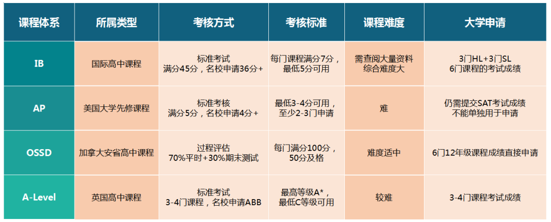 四大主流国际高中课程体系对比