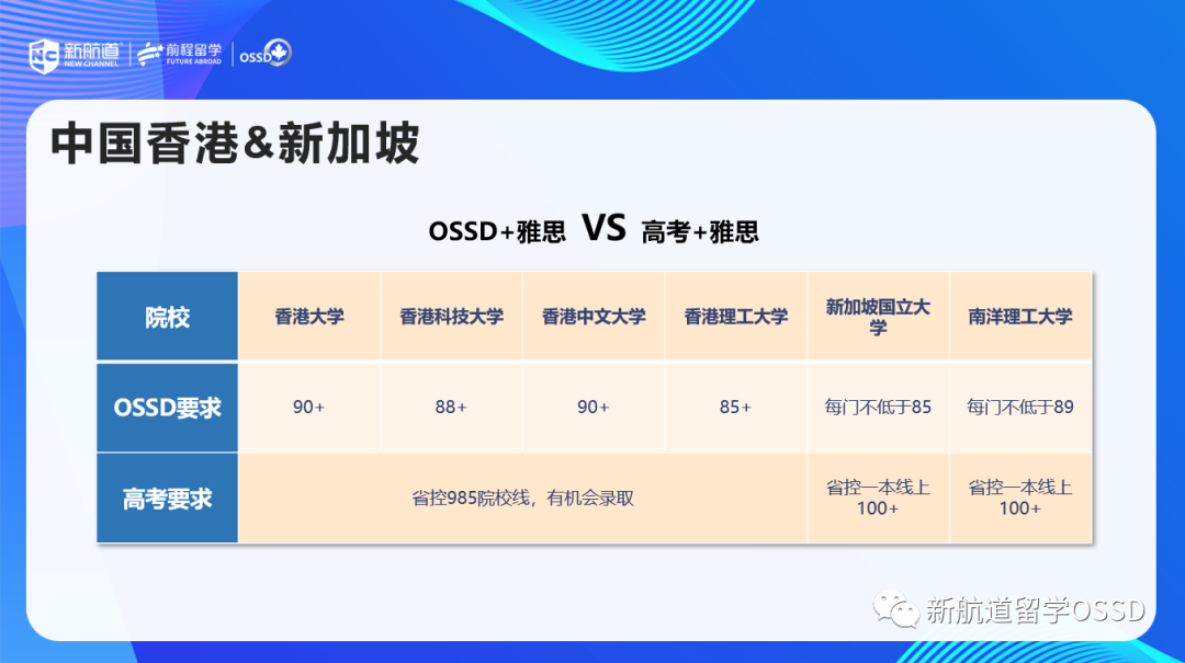认可度高:OSSD是全球最先进的中学课程体系之一 ,因其优质严格的教学管理在全世界具有极高的认可度,学生可以申请加拿大、英国、澳大利亚、美国、新加坡、中国香港等热门的留学国家和地区。