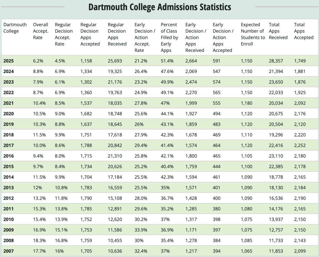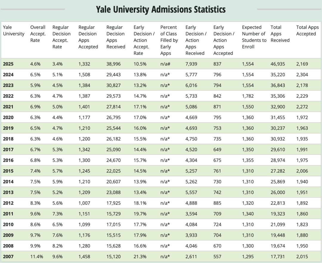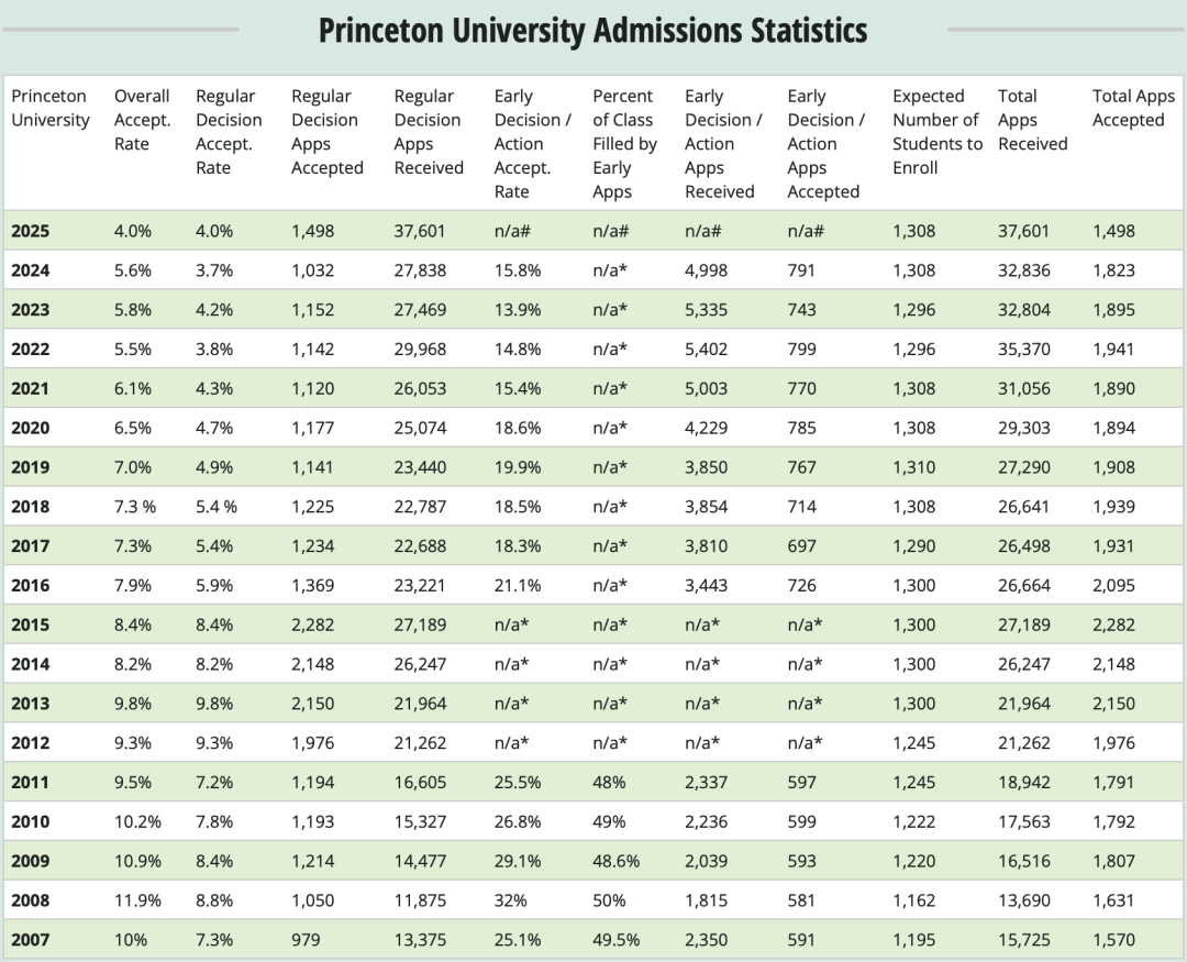 除普林斯顿暂未公布数据外,其余七所藤校中,有6所高校均创下新低!