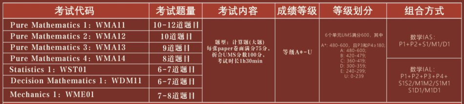 A-Level数学6个单元,每个单元满分为100分。其中,