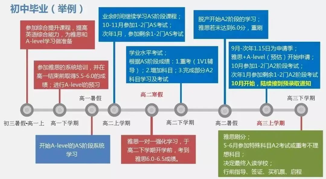 了解了各个留学国家的成绩要求和时间规划,现在再来看看具体初三到高三,如何安排A-Level学习规划: