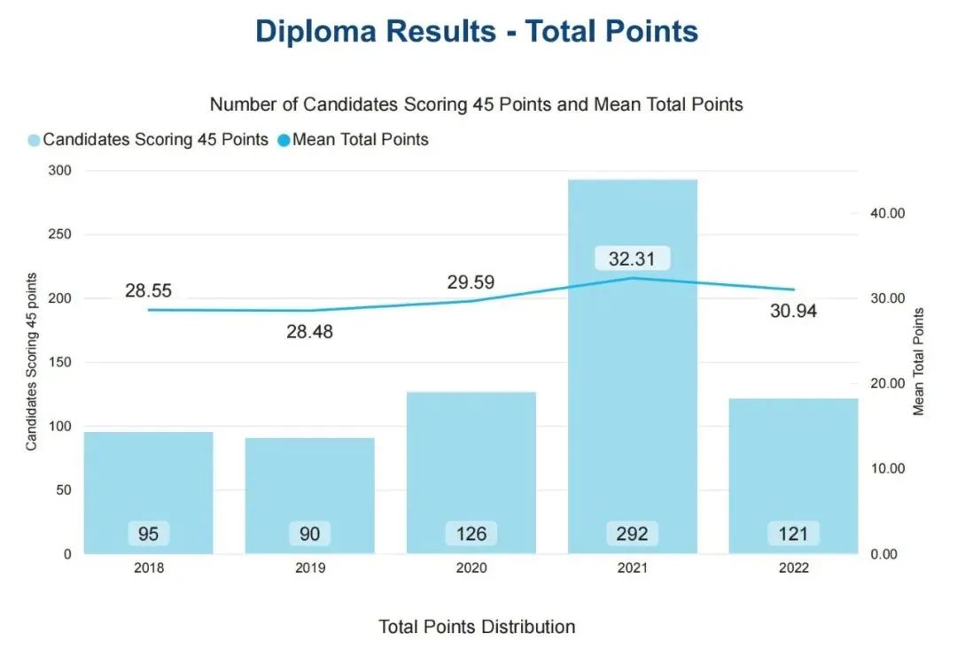 其实就是23年的大考难度将回到19年疫情前的水平,按现在的成绩看,2023年IBDP通过率、均分、高分比例等仍将继续走低,考试难度会更高,评估方式也会更加严格,拿到文凭也更难。