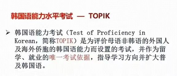一般本科新入学要求韩语TOPIK3级、本科插班要求TOPIK4级;